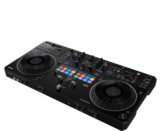 - Scratch-style izkārtojums + ergonomiska paneļa struktūra: garie tempo feideri horizontāli virs deckiem, Performance Pads un Lever FX miksēšanas daļā ļauj kombinēt scratch, efektus un pad manipulācijas vienlaikus — kā klasiskā vinila + miksera setupā.