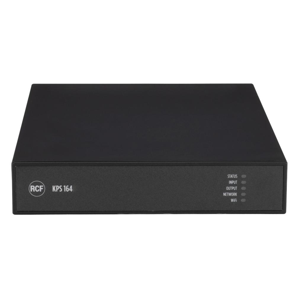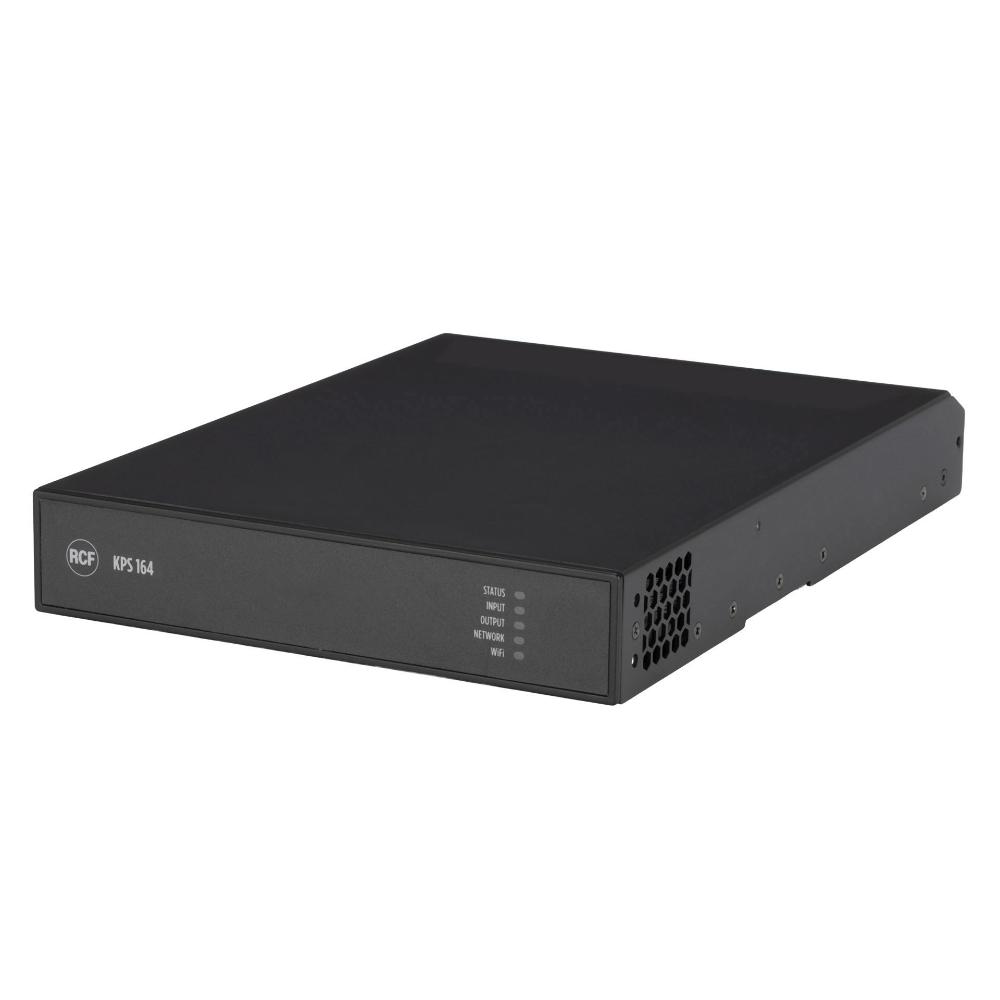 RCF KPS‑164 ir profesionāls un kompakts 4‑kanālu Class‑D pastiprinātājs ar kopējo jaudu 640 W, paredzēts prasīgām audio instalācijām, kur svarīga elastība, uzraudzība un precīza skaņas kontrole. Tas apvieno integrētu DSP ar vadību, padarot to piemērotu modernām audio sistēmām ar daudzzonu arhitektūru.