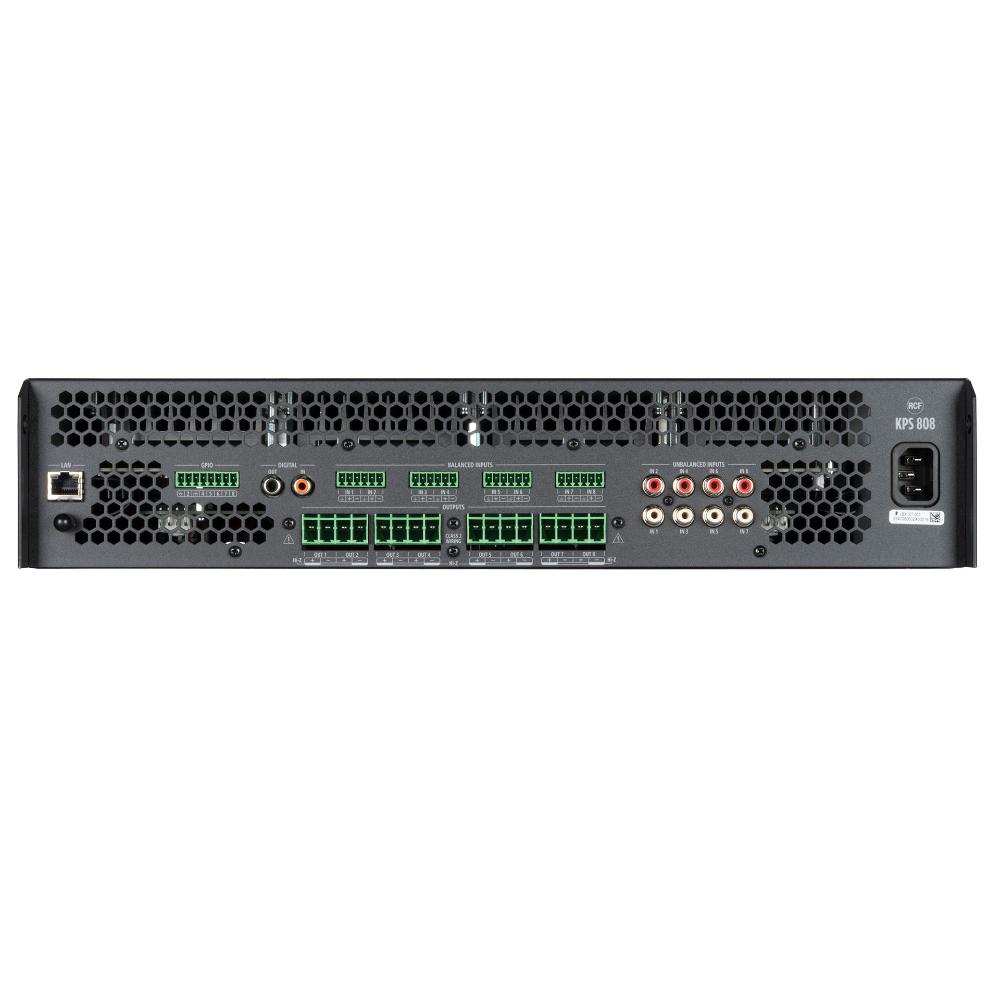 RCF KPS-808 ir profesionāls 8-kanālu Class-D pastiprinātājs ar kopējo 6400 W izejas jaudu, paredzēts prasīgām audio instalācijām un sistēmu risinājumiem, kur nepieciešama liela jauda, elastība un precīza signāla apstrāde.