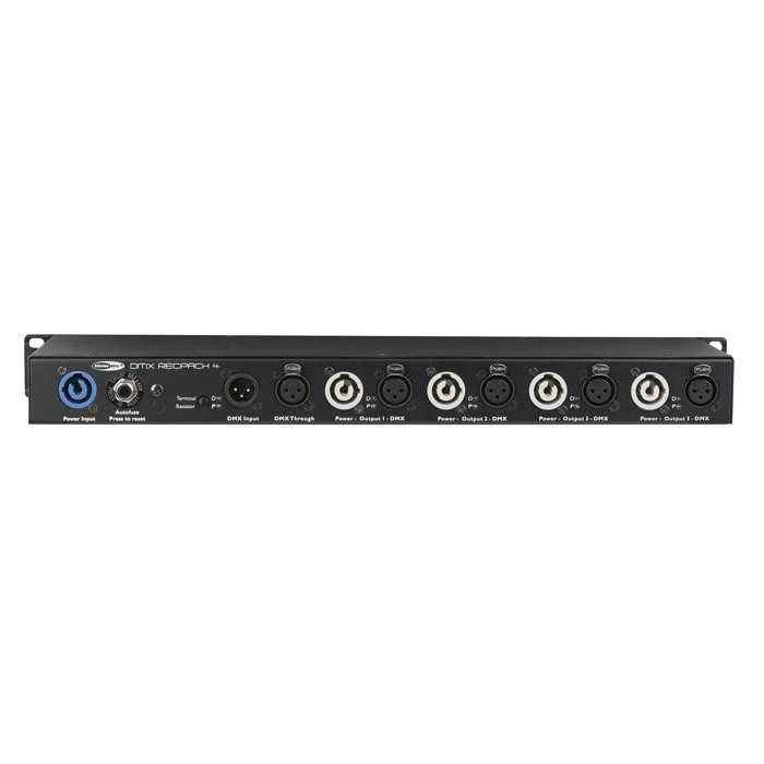 Showtec DMX Recpack 4 ir DMX ierakstītāja un switch pack. Tam ir 4 induviduāli programmējamas DMX un switch izejas. Katra DMX izeja spēj atkārtot iepriekš ierakstītās scēnas vai šovus. Neskaitot 4 DMX izejas Reckpack 4 aprīkots ar 4 slēdzamāmm 230V izjeām. Katra 230V izeja aprīkota indikatoriem un limiteri.